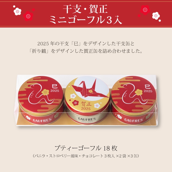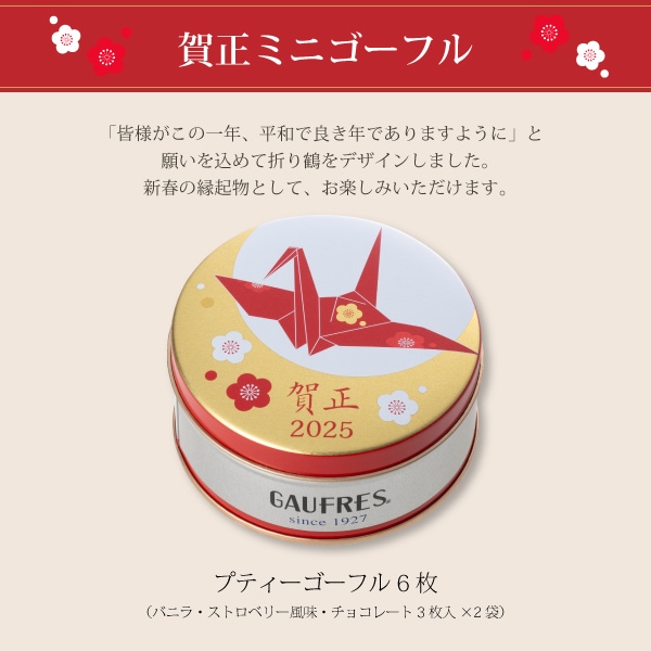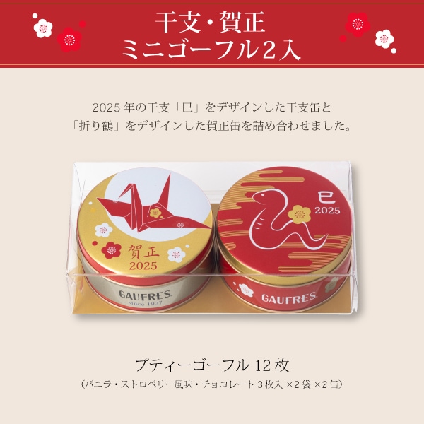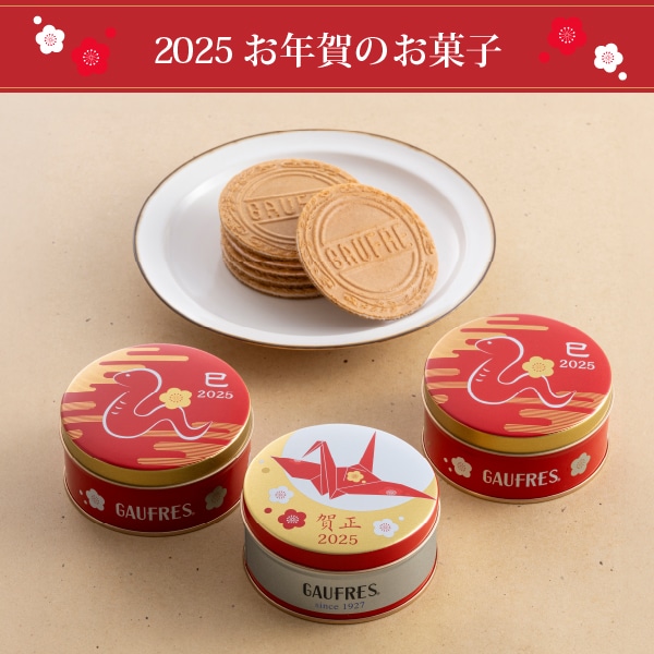神戶風月堂為慶祝2025年新年,推出限量版精美賀年點心,寓意新年吉祥、幸福與滿滿祝福。這款新春賀禮包含香草、草莓風味和巧克力夾心的迷你高芙,外層使用兩款特別設計的禮盒裝:一款以2025年生肖「蛇」為主題,另一款則為傳統的「賀正」設計,兩款皆點綴著象徵幸福的摺紙鶴圖案,傳達對新年的美好期許。此款賀年甜點不僅造型喜氣,口味也豐富多樣,是新年拜訪親友、答謝合作夥伴的理想之選,用美味傳遞深深的感謝與祝福。